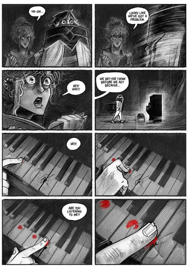 Jaw-dropping artwork illuminates a mind-bending work of psychological horror about creative souls struggling against oppression and depression.