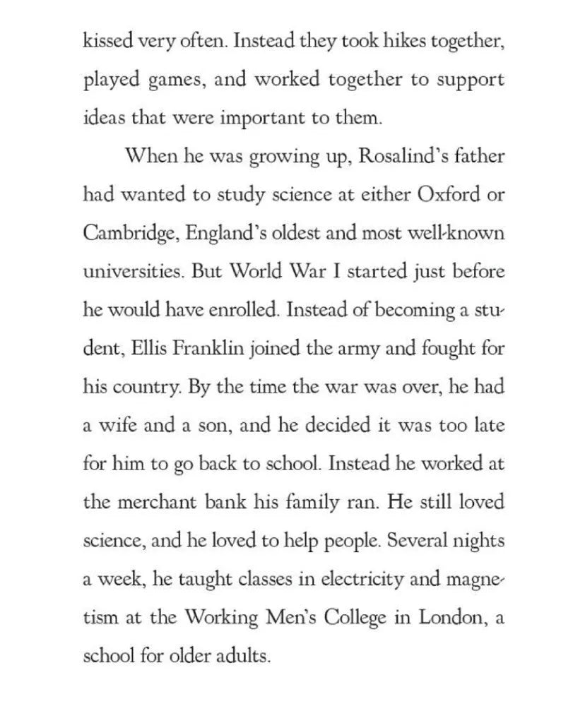 In this chapter book biography by bestselling and award-winning author Kimberly Brubaker Bradley, readers learn about the amazing life of Rosalind Franklin--and how she persisted.