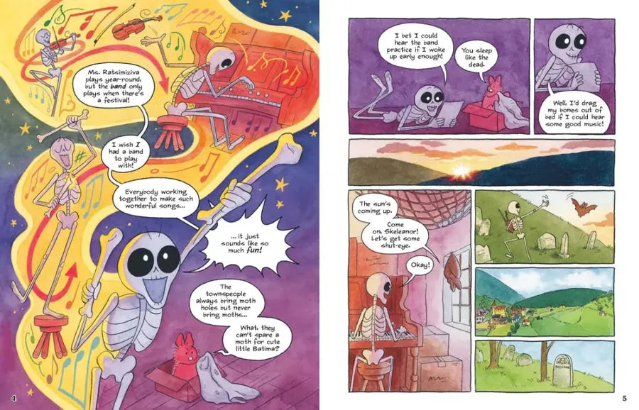Skeleanor loves music more than life itself. There’s just one problem: She has a bit more rattle than rhythm at the moment. No matter what type of instrument she plays—from the fiddle to the xylobone—she always seems to scare the people of Little Casketon away. But with the Little Casketon Summershine festival coming up, and the town band missing a player, maybe Skeleanor (along with the help of her best friend, Batima) could show people her skills and finally take center stage.
