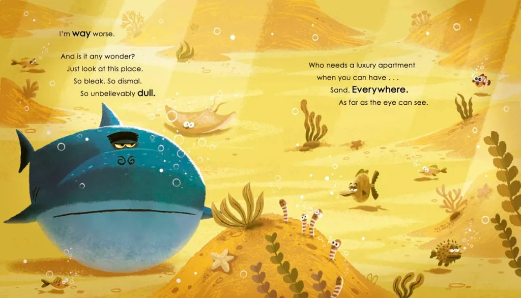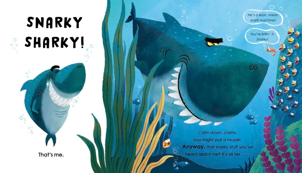 A hilarious picture book for children ages 3-7 that's filled with quick wit, puns, and the antics of a brilliantly-snarky main character, Snarky Sharky.