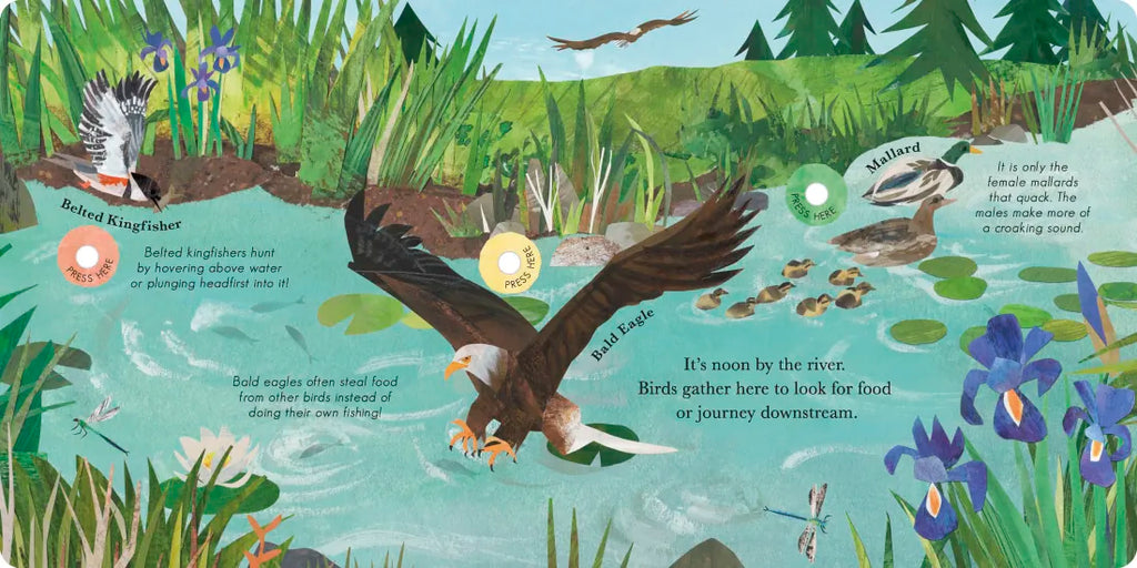 There is a fascinating world of birds right outside our door! Delve into seven beautiful North American habitats and discover an amazing variety of birds, from the dark-eyed junco and northern cardinal to the red-tailed hawk and mountain bluebird. The book includes stunning paper-cut artwork and 24 sound buttons that play bird songs or calls to help readers identify birds in the wild.
