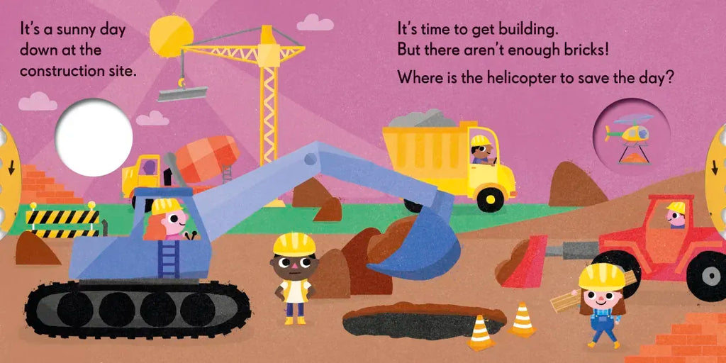 Introducing Spin and Spot: Things That Go, a wonderfully engaging and interactive storybook. This board book is complete with simple read-aloud text and an interactive wheel to spin and learn about all the amazing things that go. Jump aboard the train before it leaves the station and see where it's headed, look up at the sky and spot the helicopter coming to the rescue, and help the rocket land safely on the moon!