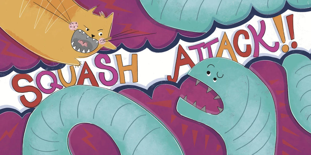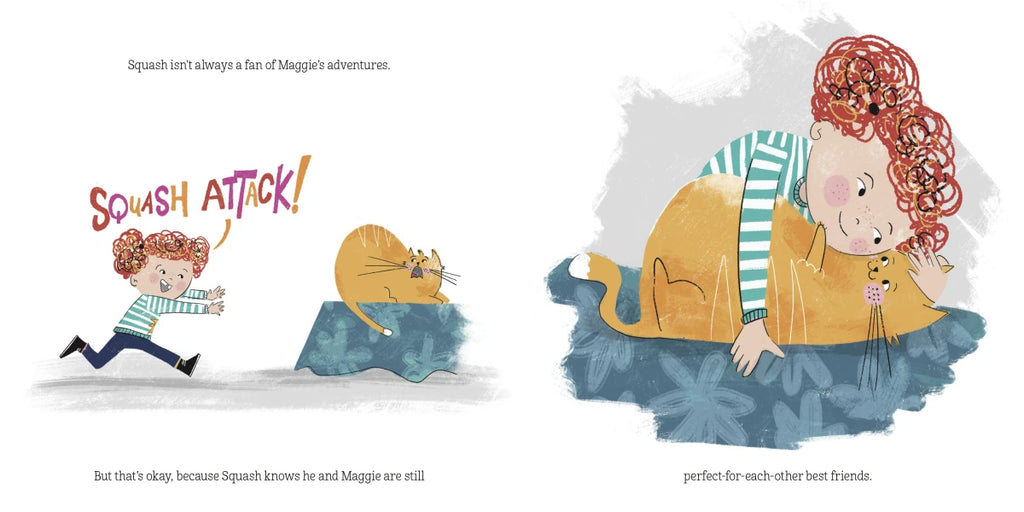 Squash, who looks a lot like the vegetable, is an early-breakfast, lots-of-naps kind of cat. Maggie is a wake-up-late, wild-playdate kind of girl. Despite their differences, they are the best of friends. That is until one day Squash confuses Maggie’s new toy for a dangerous beast and makes a terrible mistake. An unbelievably BIG MISTAKE. Now Squash is a can’t-face-Maggie kind of cat, and Maggie is a wishes-she-had-her-toy kind of girl. But the thing about best friends is, one way or another, they always find a way back to each other.