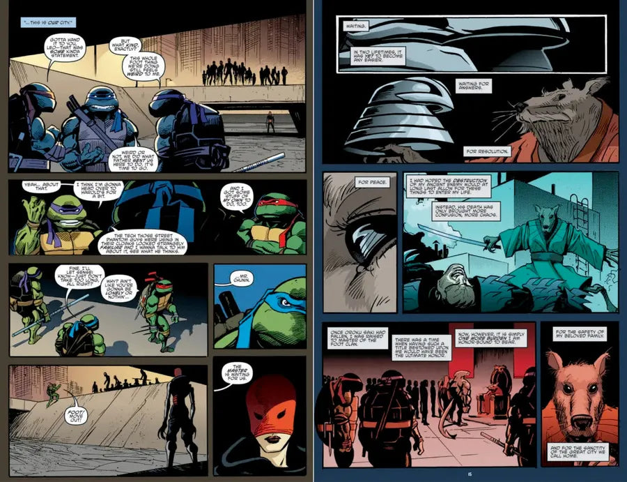 A new age begins for the Turtles as the epic events of the past have created new opportunities for the future, but new dangers as well. While they continue to get used to a world leading the Foot Clan post-Shredder, they return to the Technodrome to monitor the revival of the Utroms on Burnow Island and are surprised to meet a new mutant—Leatherhead! Will the mysterious mutant be friend or foe? Plus, Kitsune still poses a threat, and a new group, the Street Phantoms, enters the fray!