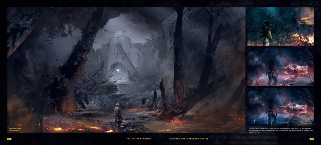 When Selene Vassos crash-lands on a mysterious alien planet while in search of a cryptic signal, she’s made to face treacherous landscapes, hostile creatures, and a ceaseless time loop that returns her to the moment of her crash each time she would otherwise have died. This oversized volume collects concept art of the volatile biomes and terrifying enemies, as well as insightful commentary from the game’s creative team.