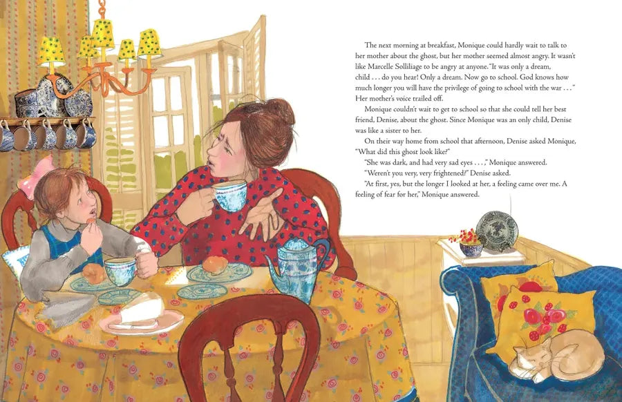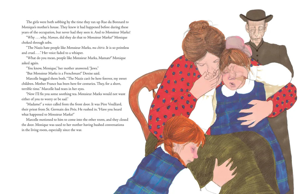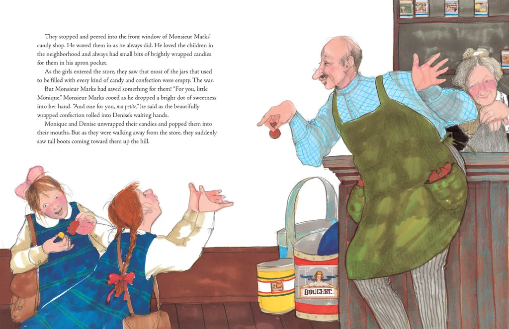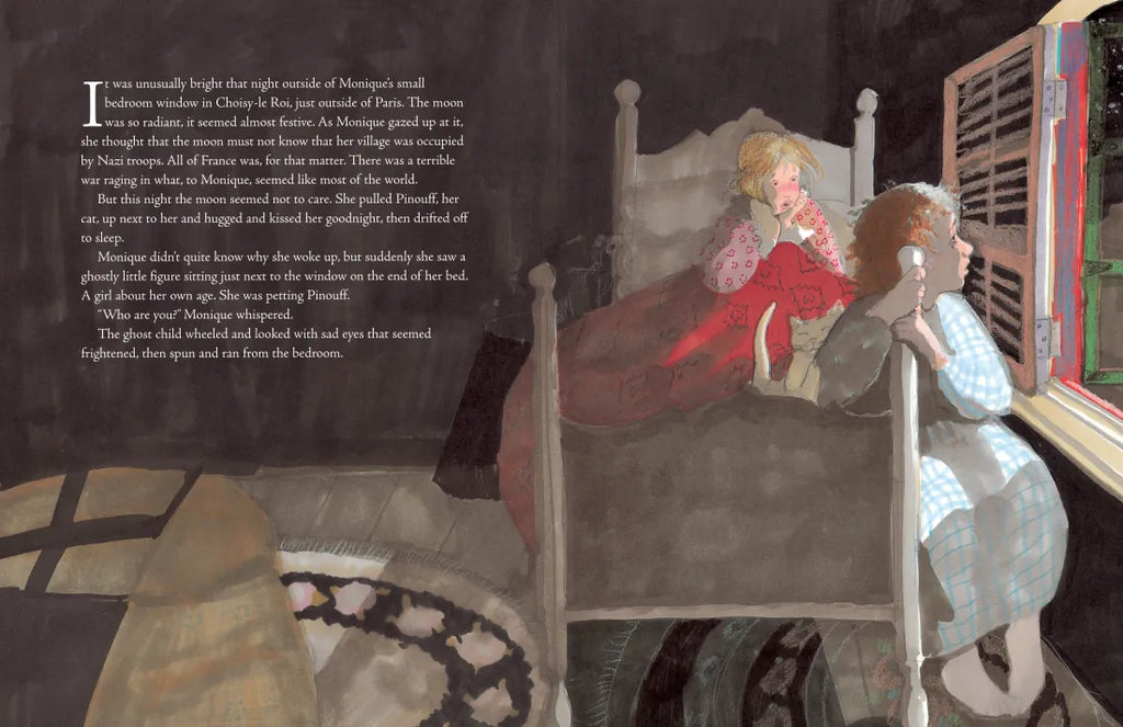 Ever since the Nazis marched into Monique's small French village, terrorizing it, nothing surprises her. That is, until the night Monique encounters a little ghost sitting at the end of her bed. She turns out to be a Jewish girl named Sevrine who has been hiding from the Nazis in Monique's basement. Playing after dark, the two become friends. But when they are discovered, both of their families must embark on a nighttime flight. And Monique can only hope that the freedom of the butterflies in her garden will reach Sevrine as well.