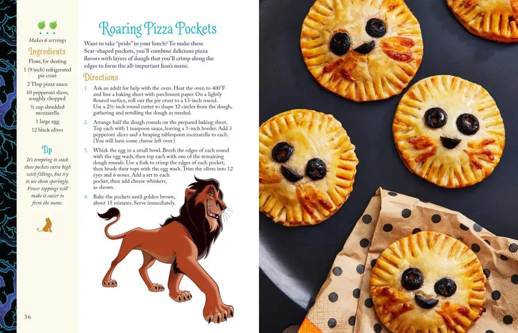 - 50 beginner-friendly recipes, including dishes like Kronk's Spinach Puffs, Gaston's Chicken Drumsticks, Cruella Cookies, and many more