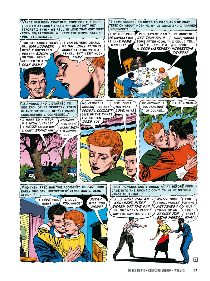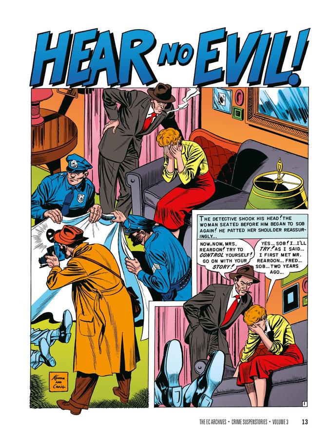 Collecting issues #13–#18 of Crime SuspenStories from the twisted artistic talents of Al Feldstein, Johnny Craig, Bill Gaines, Jack Kamen, Sid Check, Al Williamson, Fred Peters, Graham Ingels, George Evans, Al Williamson, Joe Orlando, and more.