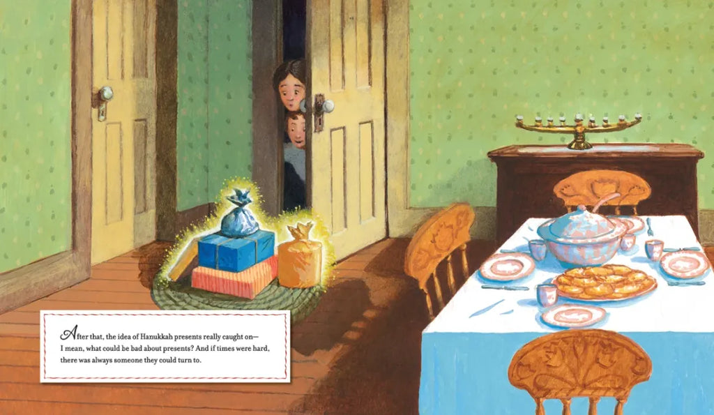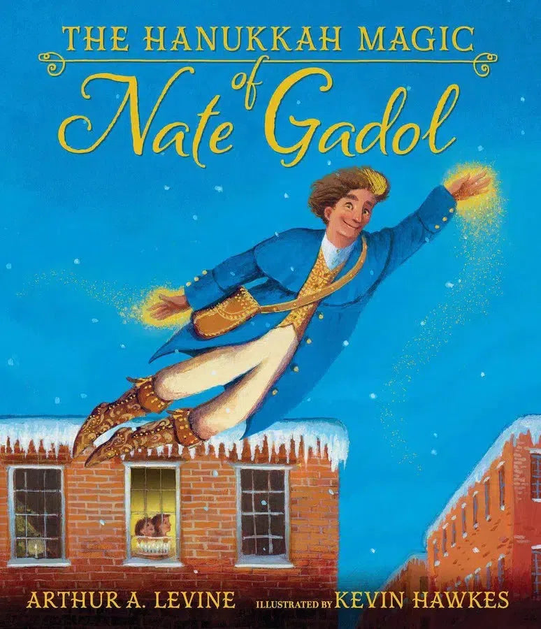 Nate Gadol is a great big spirit with eyes as shiny as golden coins and a smile that is lantern bright. He can make anything last as long as it is needed, like a tiny bit of oil that must stretch for eight nights, a flower that needs to stay fresh to cheer up someone ailing, or a small lump of chocolate that grows to allow the Glaser family to treat their children over the holiday and, during a harsh winter when medicine is needed more than sweets, spurs them to share what little they have with the O’Malleys. In this charming holiday hybrid story, well-known children’s author and editor Arthur A. Levine pairs with award-winning illustrator Kevin Hawkes to offer a mythical, magical take on the way Jewish families came to give and receive gifts over Hanukkah, just as their Christian neighbours do at Christmas, thanks to a loving spirit named Nate Gadol working behind the scenes – together with a certain jolly old soul.