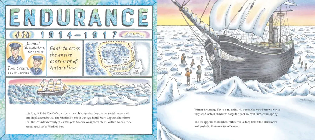 Through dazzling mapwork and vivid illustrations, Jennifer Thermes brings a formidable landscape and the Heroic Age of Antarctic Exploration to life.