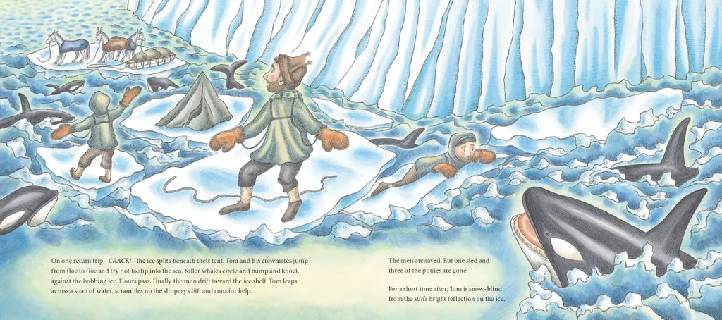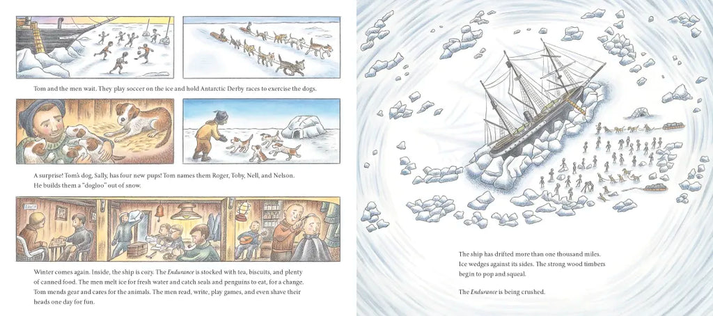 The Indestructible Tom Crean reveals the incredible true stories of Crean's adventures on the Discovery, Terra Nova, and Endurance expeditions. He hauls eight-hundred-pound sleds full of supplies, escapes from drifting ice floes, and trudges miles alone across a treacherous ice shelf. When the Endurance becomes trapped in the frozen sea and sinks, it is up to Crean and several others to go for help. They sail a tiny lifeboat through the most violent seas in the world and cross a daunting glacial mountain range by foot in order to save their fellow explorers. Tom Crean's heroic acts of courage, perseverance, and teamwork inspire the men to keep going.