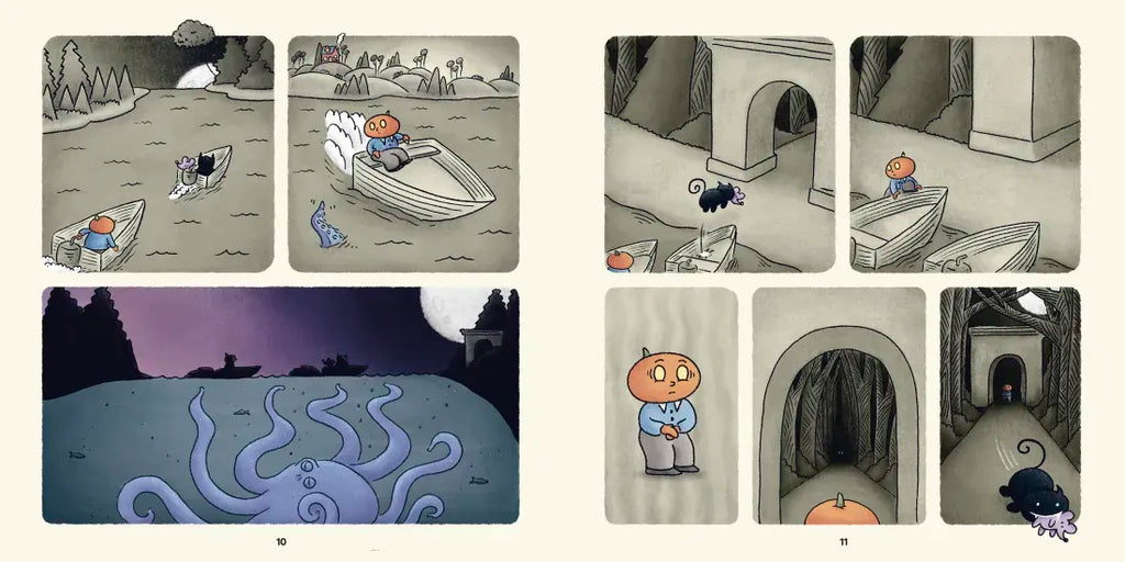 How far would you go to find your very best toy if it went missing? Join a timid jack-o'-lantern on an adventure through an eerie forest in this sweet and quirky wordless picture book!