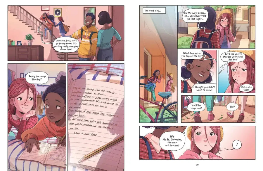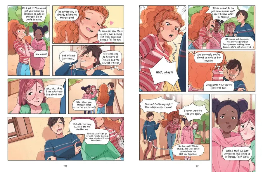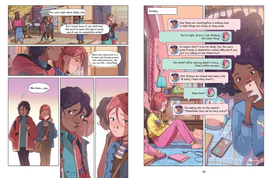BFFs Grace and Lola talk about everything related to romance—and have lots of questions: What about the mysterious allure of the popular girl at school? And the rebellious goth with the reputation? And boys. They don’t quite understand what makes some school romances soar to legendary heights, while other flirtations fizzle. Lola has an idea—they’ll observe, study, and analyze all the couples at their Junior High—and compile their findings as The Love Report. Surprises await them, and force them to learn to see beyond appearances in this fast-paced series opener. They’ll also discover secrets between themselves.