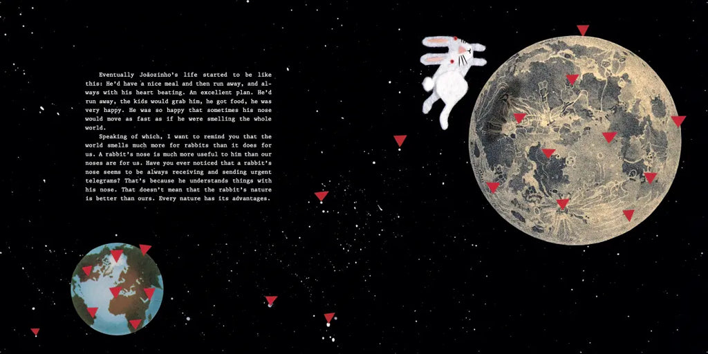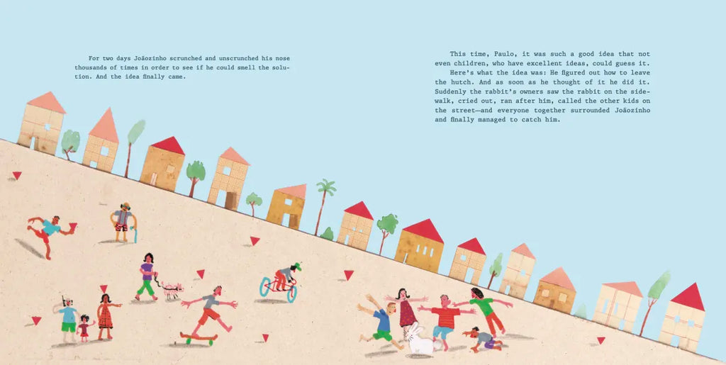 Joãozinho is an ordinary rabbit, happy and hungry. Ideas come to rabbits when they scrunch and unscrunch their noses, but as anyone who has seen a rabbit knows, they do this nonstop. In order to sniff out one single idea, they have to scrunch their noses 15,000 times. Joãozinho comes up with an idea as good as the smell of a fresh carrot. He's finally figured out how to escape from his rabbit hutch in order to find more food. Joãozinho soon becomes an escape artist—but how does he do it? That's a mystery he dares you to solve.