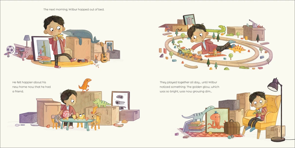 Moving house is tough, especially when you're moving to a new place with new people, and leaving your old life behind. Wilbur needs a distraction, and there's nothing better to keep his mind occupied than the curious glow that lights up his new garden every night. Join Wilbur as he discovers that flowers and the trees look different under a star-studded sky, and that new friends can be found in the most unexpected places.