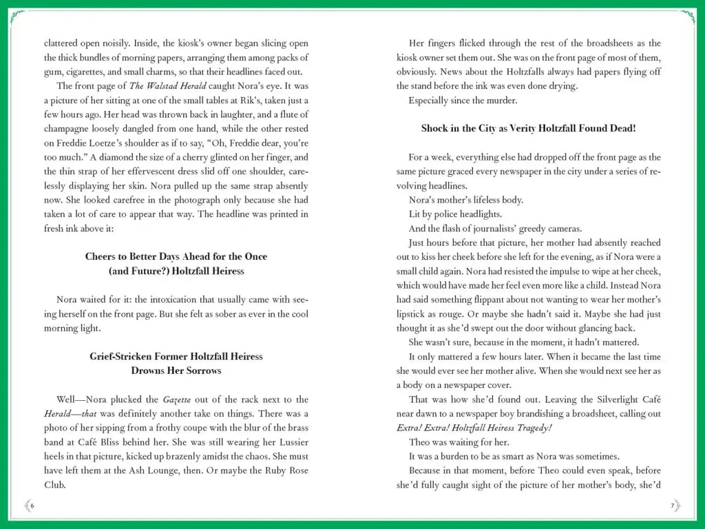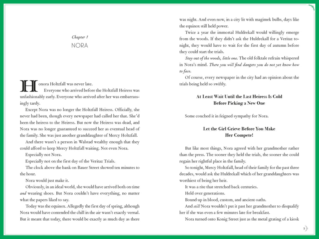 At sixteen, Honora 'Nora' Holtzfall is the daughter of the most powerful heiress in Gamanix; her family controls all the money - and all the magic - in the entire country. But when her mother is found murdered in an alley, the family throne and fortune are up for grabs, which means Nora will be pitted against her cousins in the deadly Veritaz trials to determine the rightful inheritor.
