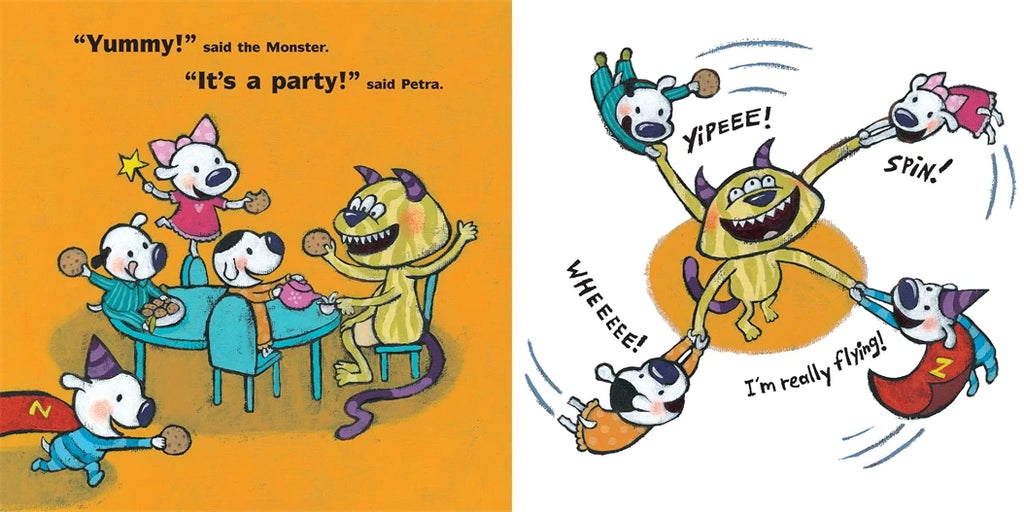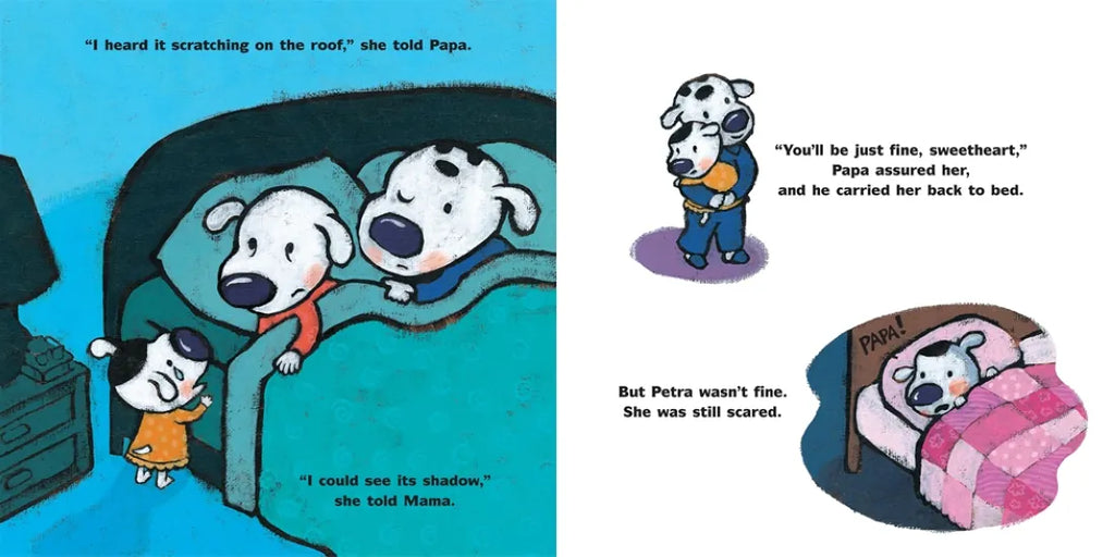 Petra is afraid of the monster that comes out in the dark. Luckily her very supportive — and very spirited — siblings find a way to turn fear into fun!