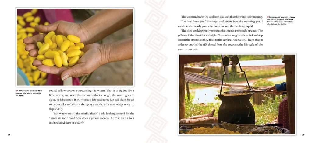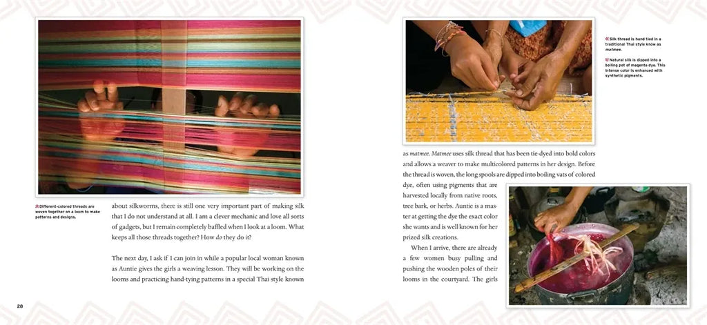 Join author and photographer Richard Sobol as he picks up his camera once more and travels to a small village in Thailand for an in-depth exploration of the story of silk and the labor-intensive process of making it. From nurturing the silkworms to weaving the fabric and photographing the children as they proudly model the finished product, this first-person narrative, illustrated with richly detailed photographs, chronicles the amazing process of creating one of history’s most desired textiles.