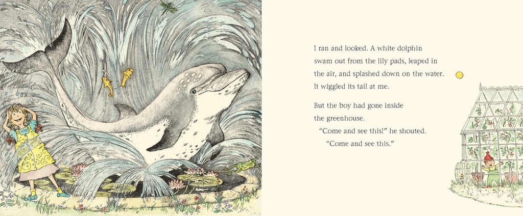 One day, on the way to the park, a little girl climbs the gate of an old yellow house. Although no one has lived there for a very long time, a little boy suddenly appears before her. "Come and play with me," he beckons. He leads her through an enchanted garden, showing her all its marvelous inhabitants: a tiger playing with its cubs in the long grass, a dolphin leaping in the goldfish pond, a pelican roosting high in the apple tree. Then the mysterious boy is gone, the girl’s mother is calling, and all is as it was before. In this well-loved picture book, Blake Morrison and Helen Craig bring us to a place where, for a moment, magic is real.