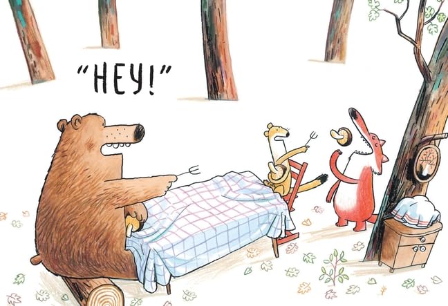 Bear and Weasel each come up with one argument after another for why they should have more: I found them! I cooked them. With my recipe! I like mushrooms more than you. I’m bigger. I’m still growing...