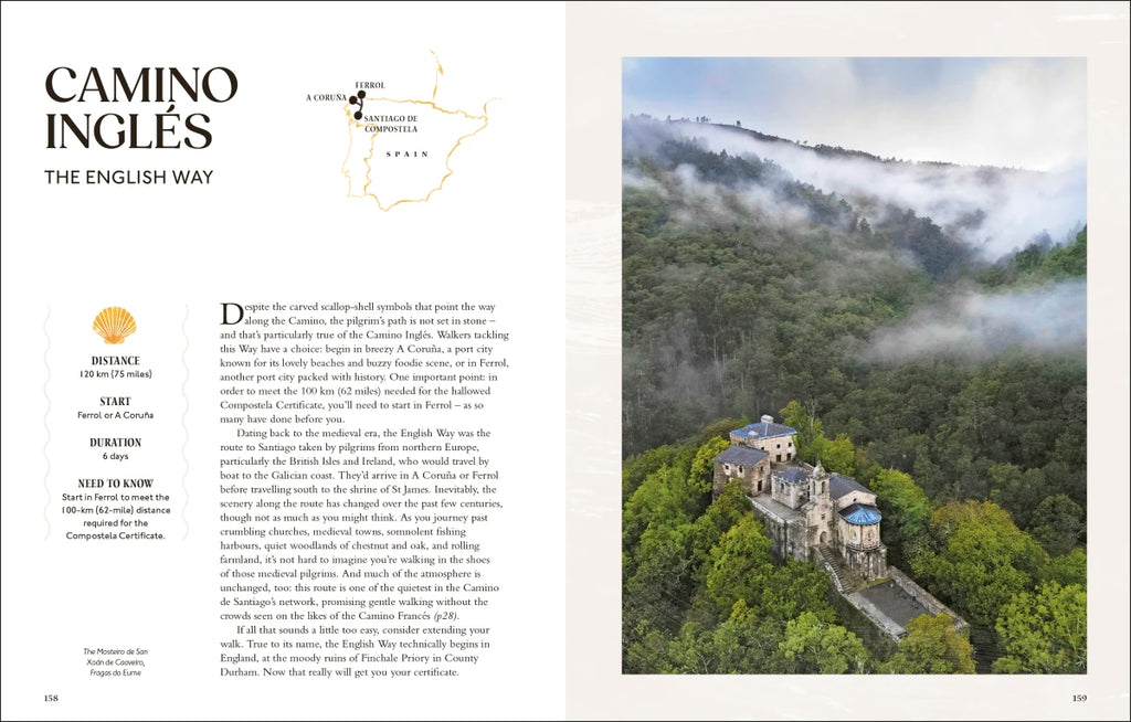 Many roads lead to Santiago de Compostela, but which one should you take? Walking the Way of St James delves into the 10 most popular routes, each with its unique charms and challenges. From the Camino del Norte to the Camino Francés, discover each route's history, sights and natural attractions, as well as practical tips, stage-by-stage breakdowns and suggestions for places to eat, drink and stay along the way.