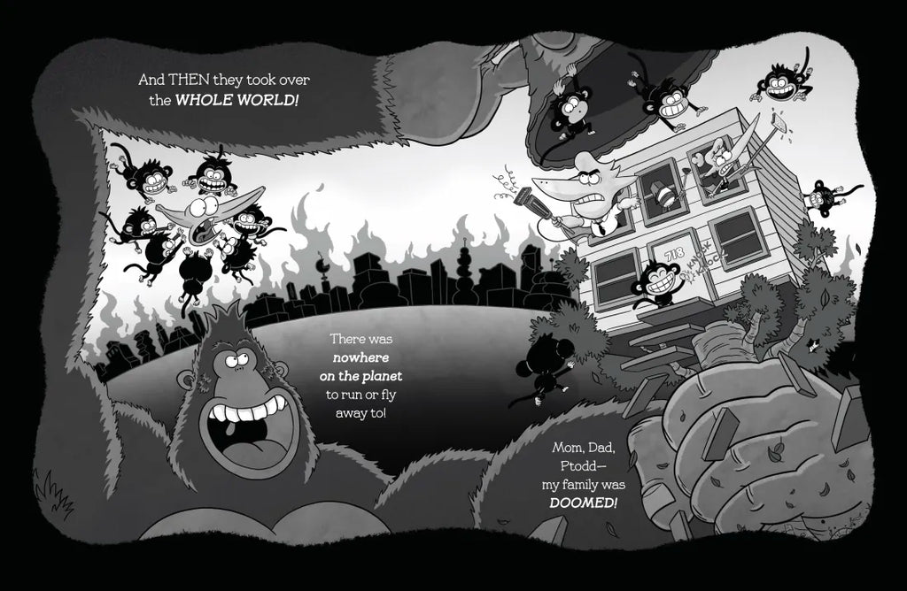 Then, on his first-day-of-school field trip, Pterry comes face to face with the horrible beasts: monkeys. And they escape! Can Pterry find the courage to save himself and his new dinosaur classmates? Or will his banana-shaped head be his downfall?