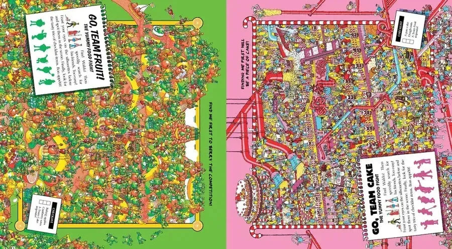 Do you have what it takes to become the ultimate search-and-find champion? Are your eagle eyes in focus? Waldo summons you to a search-off! Just take a seat opposite a friend or family member and open up this book of adventures, designed to lie perfectly flat between you so each can search one side of the spread. Try racing against the clock or go head-to-head with your fellow Waldo-hunter, then turn the book around and start again. To keep things interesting, every spread has a different theme (Team Fruit versus Team Cake, anyone?), while extra games and checklist challenges keep the momentum going. So get ready, set . . . may the worthiest Waldo-watcher win!