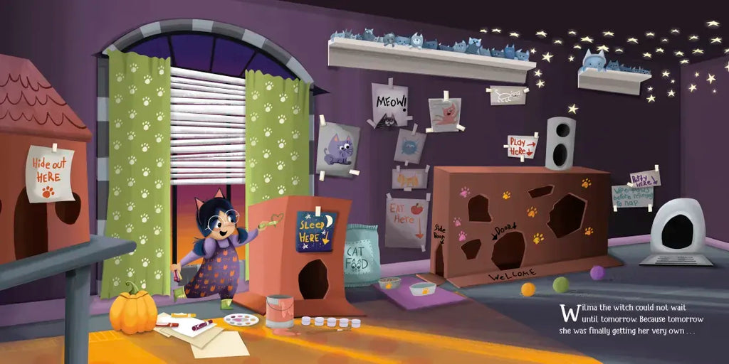 Wilma, a young witch, cannot wait to get her very first cat! But when the pet store is fresh out of kittens, Wilma brings home. . . a wombat?! What a CAT-astrophe! A wombat is nothing like a cat, but maybe if Wilma puts cat ears on the little critter, no one will notice. . . . (Spoiler alert: they do.)