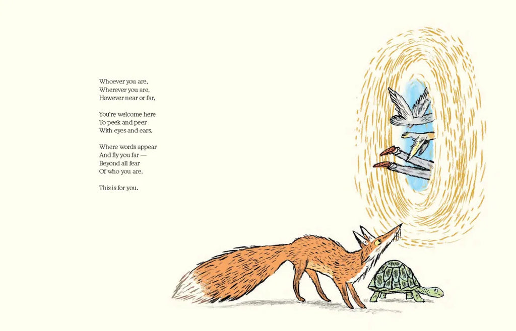 Beyond the doorway of the first page of this collection awaits a dragon piñata, an alligator on the A train, a hungry yeti, an ice cream dream, jetpack sneakers, midnight firelight, a gray day, a plump tomato, a serious question and so much more. Whether you're feeling blue, lemon yellow or Day-Glo green, this inviting and magical book of poems takes young readers on an uplifting journey through everyday moments, moods and experiences, transforming the ordinary into the extraordinary. With enchanting illustrations throughout and seven die-cut portals that open into the realms of Welcome, Wonder, Wild, Weee!, Whoops & Wallops, Windows and Whispers & Well Wishes, Words With Wings and Magic Things explores how words can awaken us to a world of wonder and possibility. Step inside . . . and take flight!