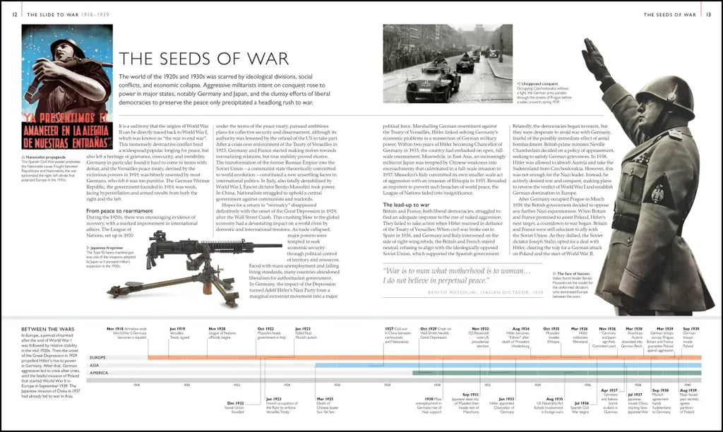 Follow the key developments of World War II in unprecedented visual detail, with more than 100 specially created historical maps covering all major theatres of war. Discover how the conflict raged around the globe on land, air, and sea, while timelines provide an in-depth chronology of events. Beautiful archival photographs, contemporary artefacts, and profiles of famous leaders reveal the full story of the war that shaped the modern world.