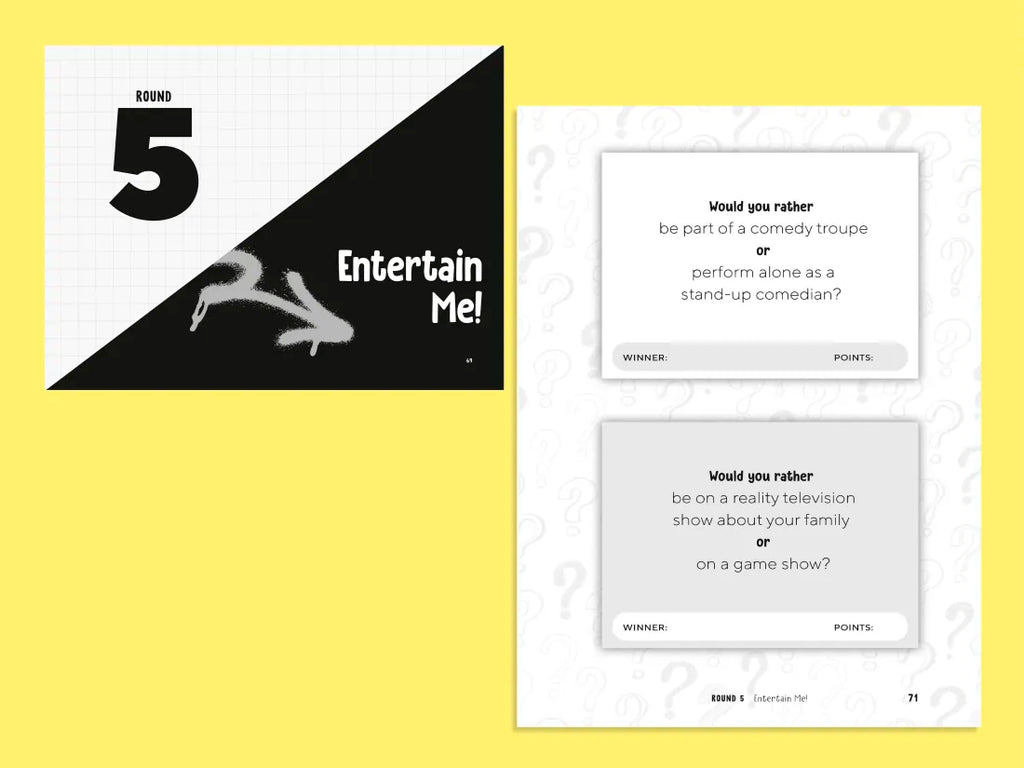 - Screen-free time with entertaining and thought-provoking questions that give everybody a break from technology.