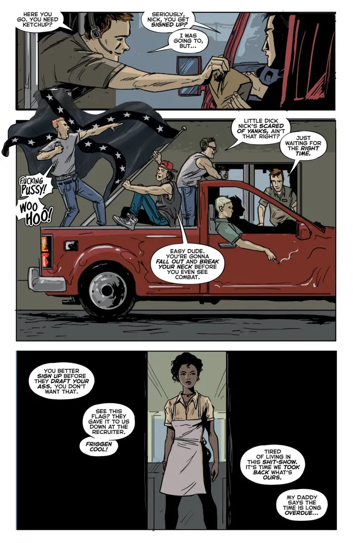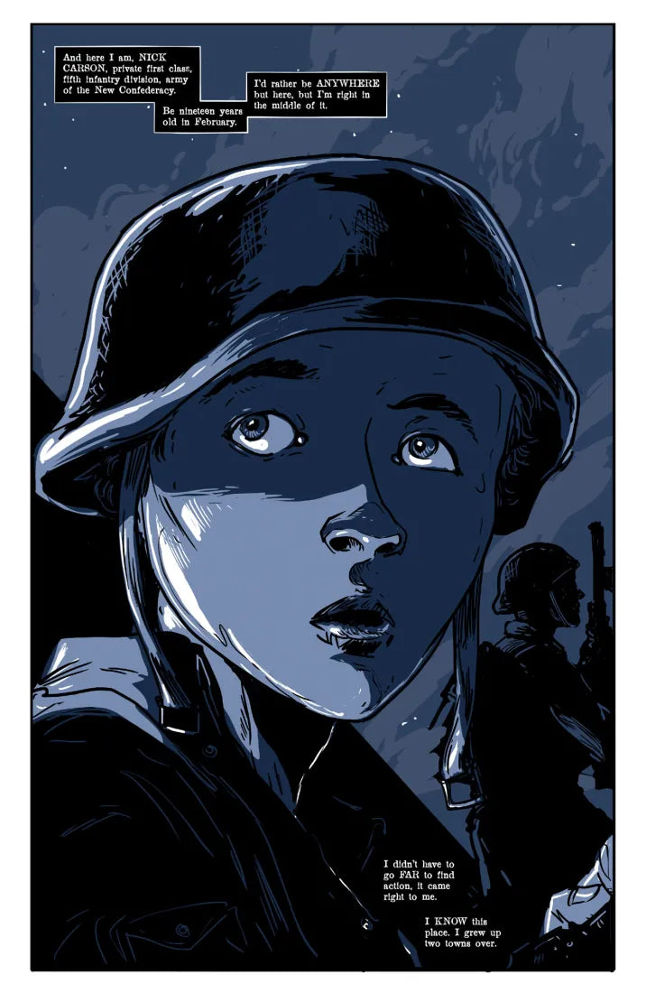 Set in an alternate future amid a Second Civil War, wounded infantryman Nick Carson flees the battlefield and escapes across the wasteland of war-torn America.