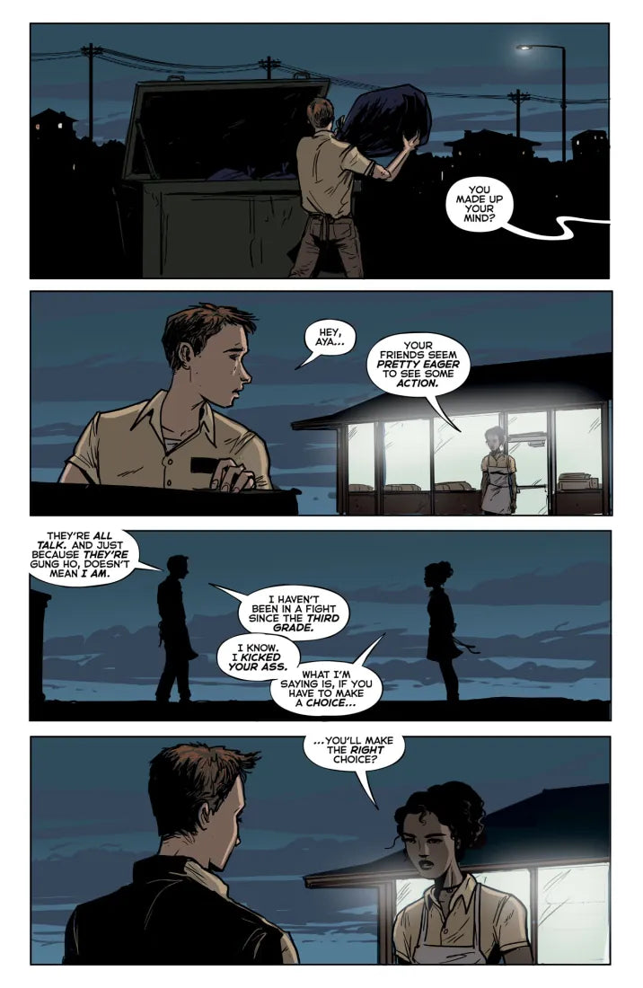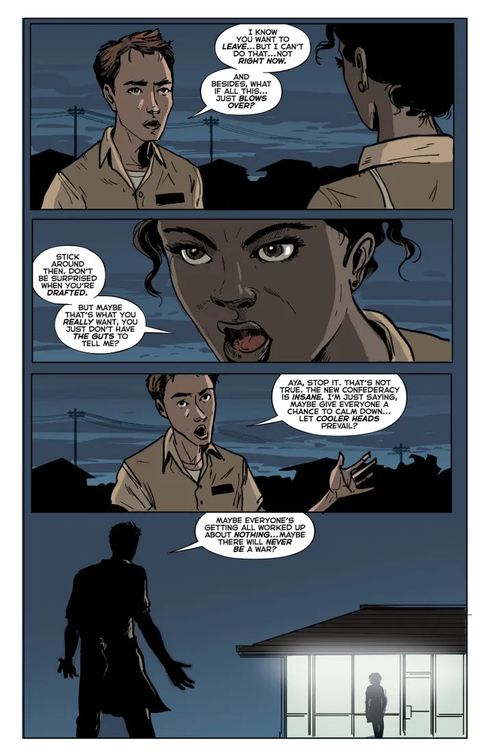 Branded a coward and marked for death, Nick’s only hope is to get to the other side. His route takes him through a strange, ravaged country where power plants lay destroyed and once great cities have gone dark. An America at war with itself.