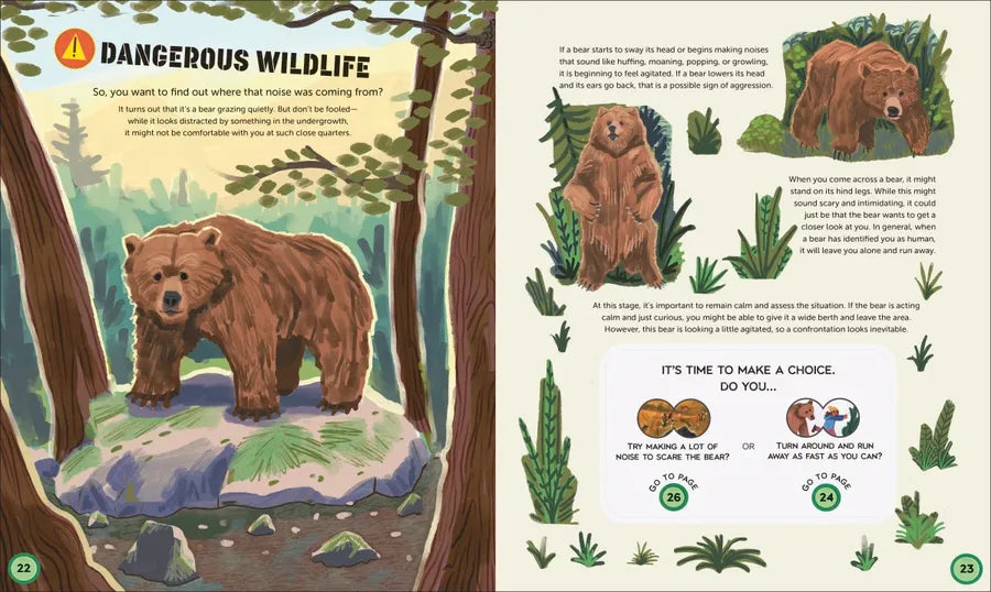 Get ready to join outdoor adventurer Bear Grylls as you take on snowcapped mountains, craggy cliffs, exposed open grassland, dense forests, and raging water rapids. Just like on a real adventure, you’ll have to think fast – the choices you make will reveal which page you need to turn to in the book, just like a pick-your-own adventure story. But remember, choose carefully! Bear will be there to help guide you and give you some handy tips and tricks, but the decisions will be yours to make.