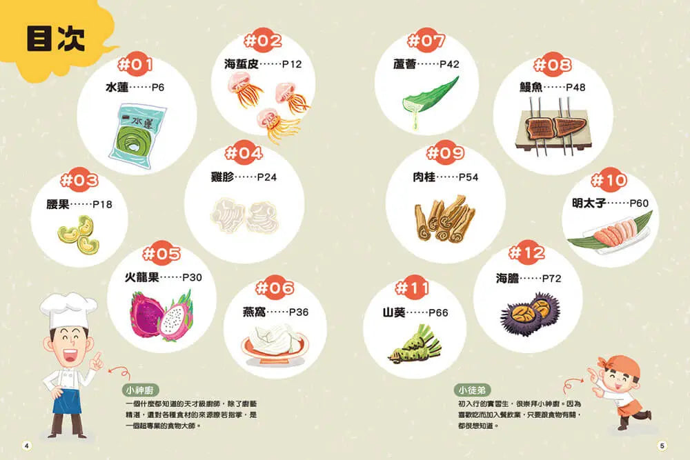 1.由什麼都知道的「小神廚」和傻傻跟班的「小徒弟」擔綱演出,介紹食材的來源以及趣味大小事。