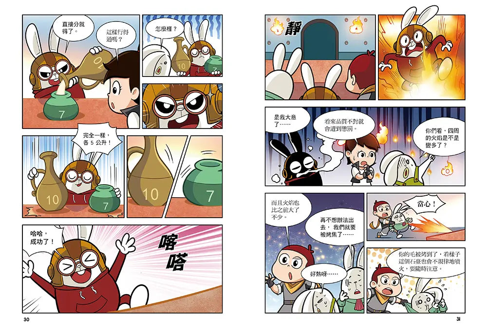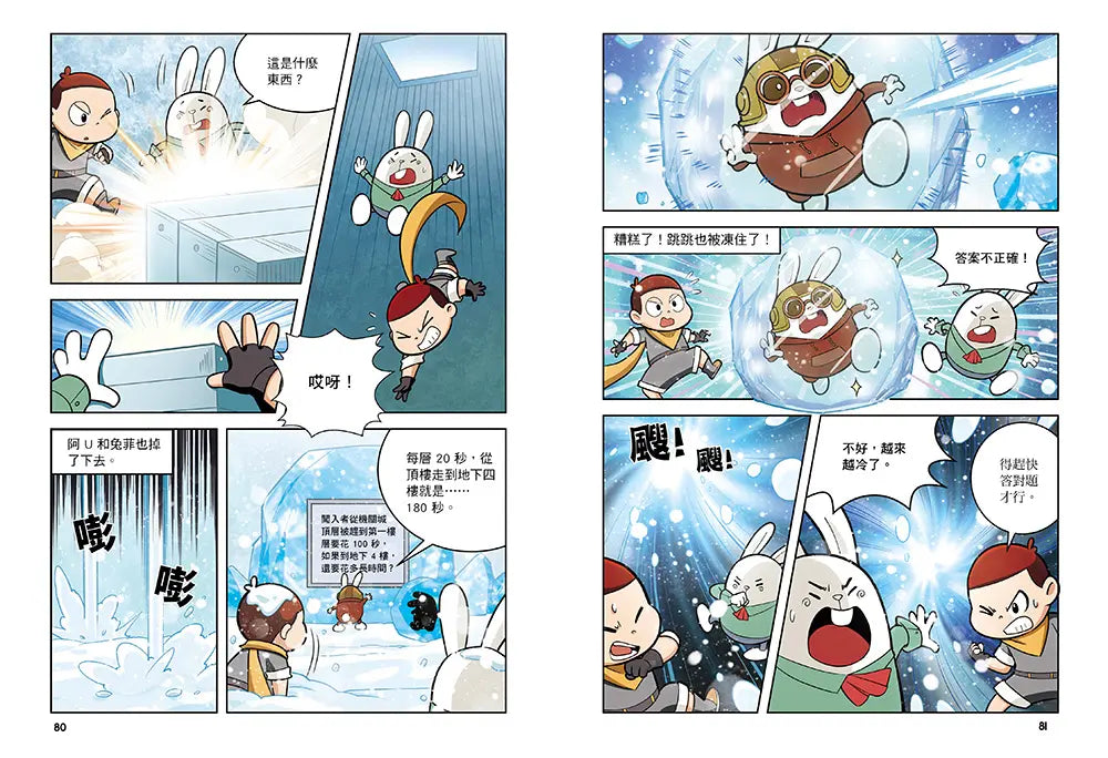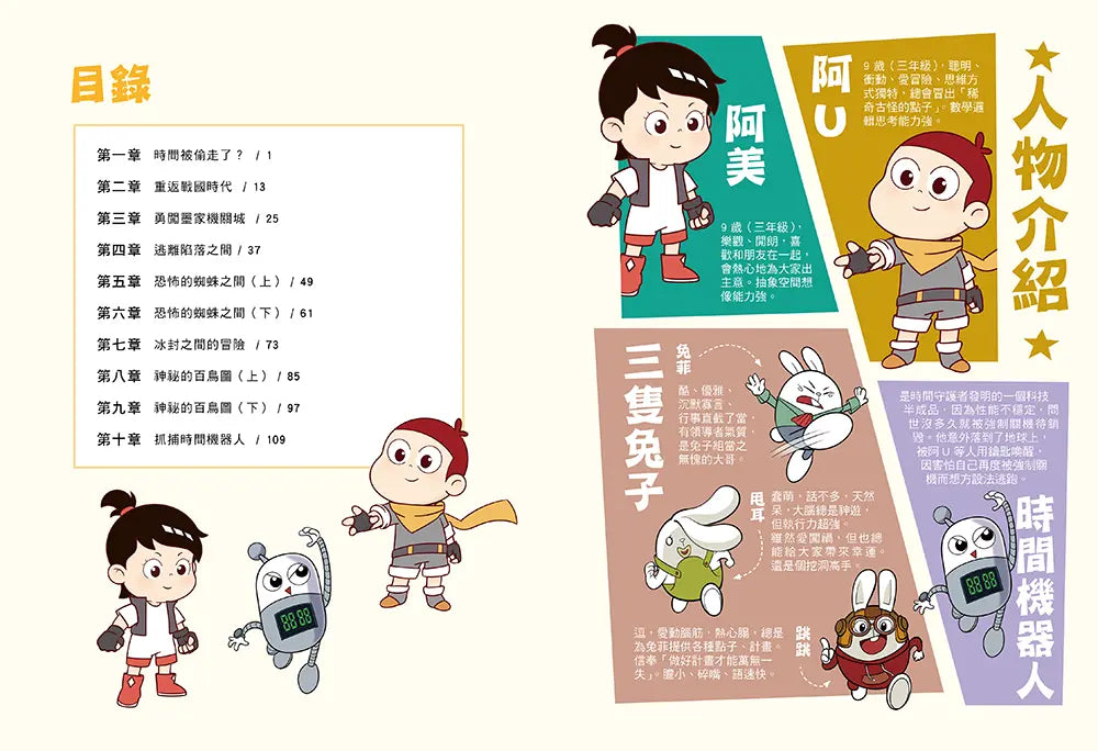 *可愛角色+精彩劇情!阿 U 與三隻兔子帶領孩子穿越古今,激發閱讀興趣。設計上貼近小學階段數學能力,文字、生動漫畫畫面、闖關情節,皆為孩子自主閱讀友好。