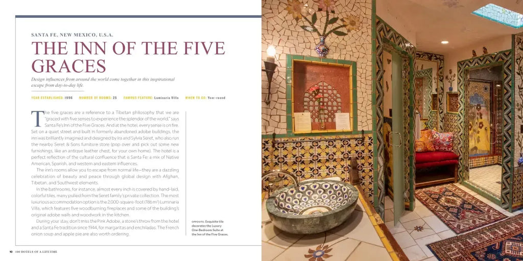 Written by National Geographic travel expert Annie Fitzsimmons, each entry of this luxurious volume highlights the unique and storied history of the hotels, the intricacies of their stunning architecture and cozy interiors, the people who have put the properties on the map, and one-of-a-kind experiences to be had within each hotel, whether or not you’re staying as a guest.