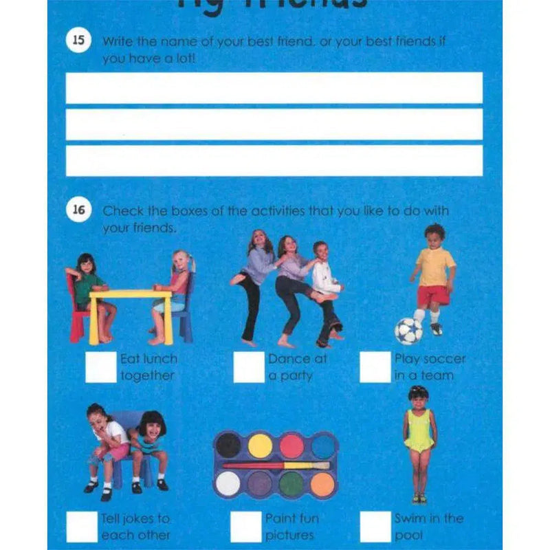 With simple inspirational prompts, a child is encouraged to write, draw, color, find stickers and match them to their outlines, and so much more with fun activities offering kids hours of fun.