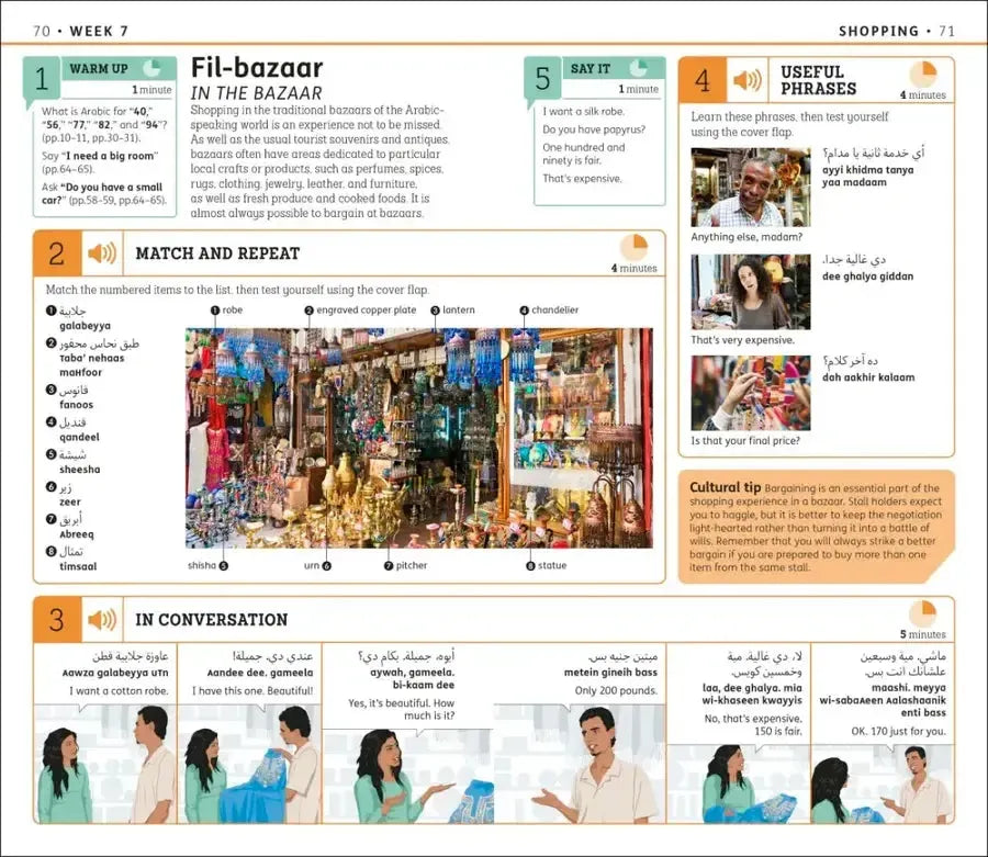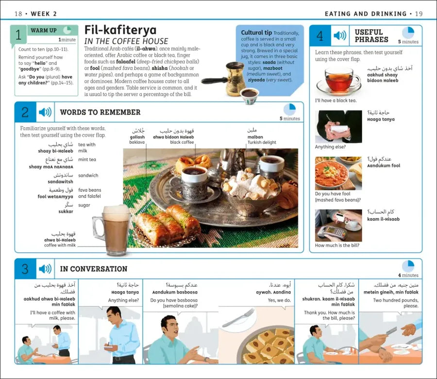 DK’s 15 Minute Language is the perfect course for busy people who want to learn Arabic fast. The 12 themed chapters are broken down into easy-to-follow 15-minute daily lessons spanning a range of practical themes, including leisure, business, food and drink, travel, and shopping.
