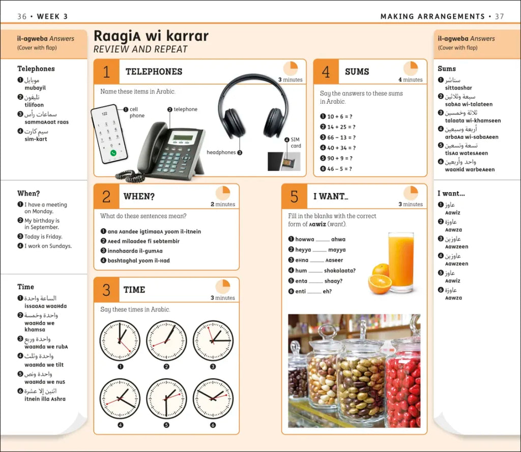Each lesson combines vocabulary and grammar essentials with attractive full-color images, making it quick, easy, and fun to learn new Arabic vocabulary. There is no writing or homework – you simply use the cover flaps to hide the answers to exercises and test yourself as you learn. Each chapter ends with a review module, so you can track your progress and identify areas where you need further practice.