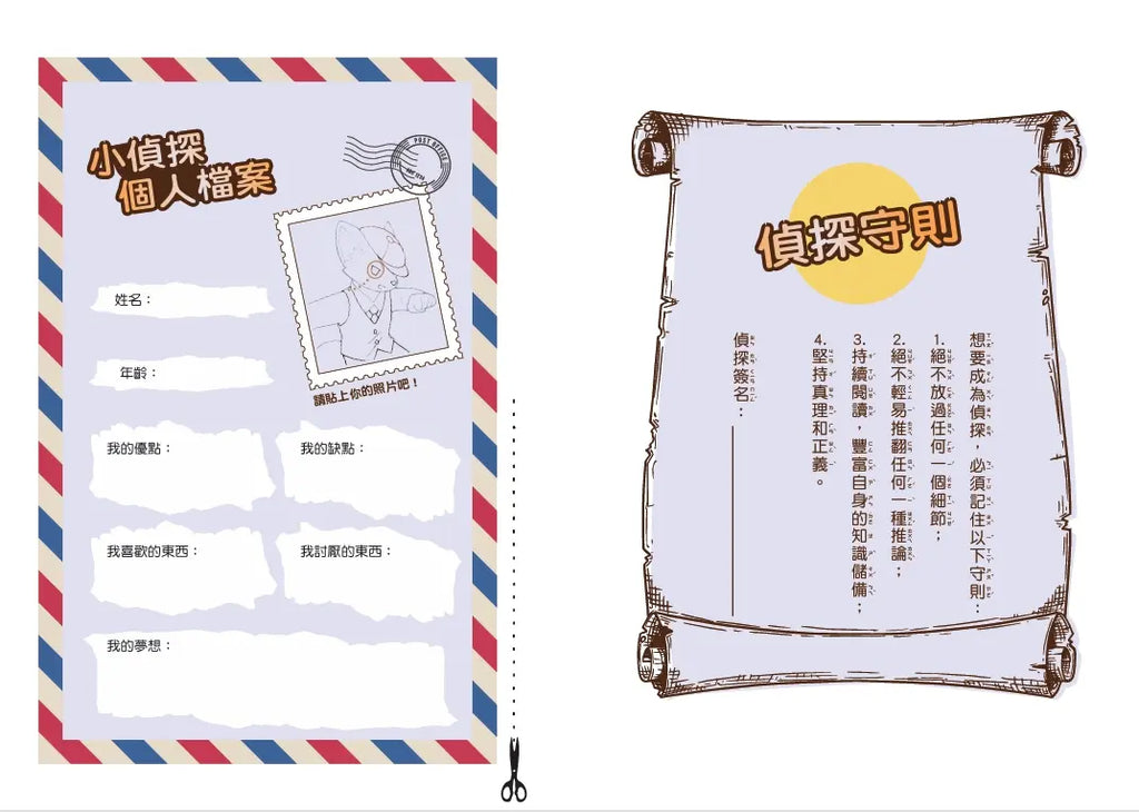 ✦啾颯偵探筆記:幫助小讀者整理線索,推理思考,提升觀察力和分析力。