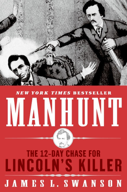 The murder of Abraham Lincoln set off one of the greatest manhunts in American history — the pursuit and capture of John Wilkes Booth. James Swanson’s Manhunt describes the hour-by-hour details of the twelve days after Abraham Lincoln’s assassination as authorities hunted for his killer.