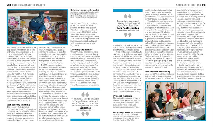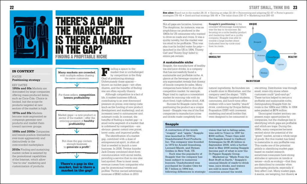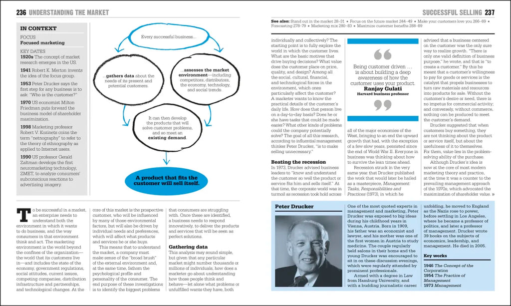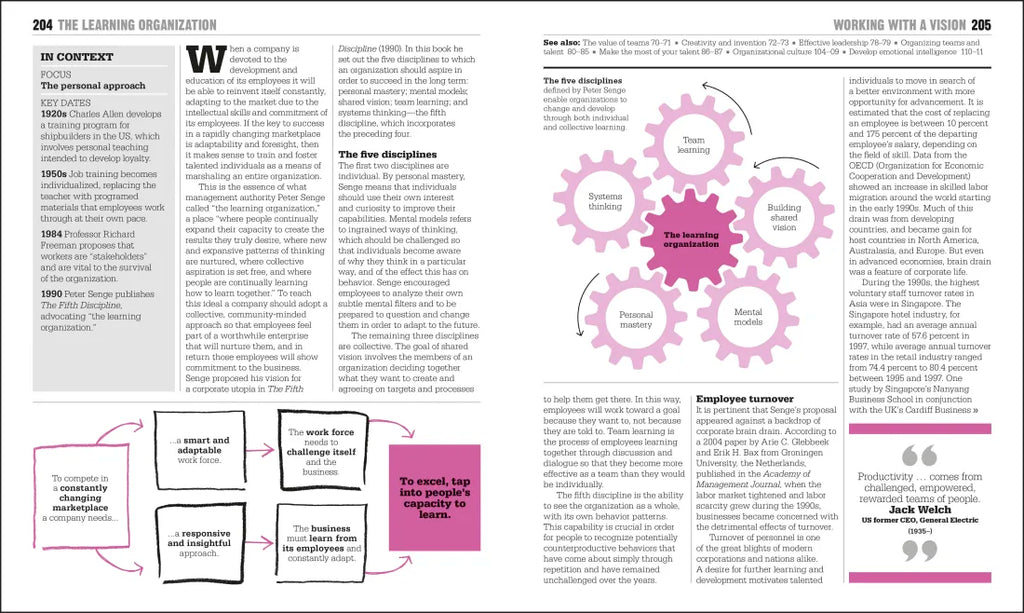 This book introduces the would-be entrepreneur and general reader to the work of great commercial thinkers, leaders, and gurus. Learn about the hurdles facing every new business, such as finding a gap in the market, securing finance, employing people, and creating an eye-catching brand. If you thought it was difficult to learn about the world of commerce, The Business Book presents information in an easy to follow layout. Learn the ideas of seminal business thinkers, such as Malcolm Gladwell's "tipping point", Michael Porter's "five forces", and Meredith Belbin's theories on effective teamwork, with fantastic mind maps and step-by-step summaries.