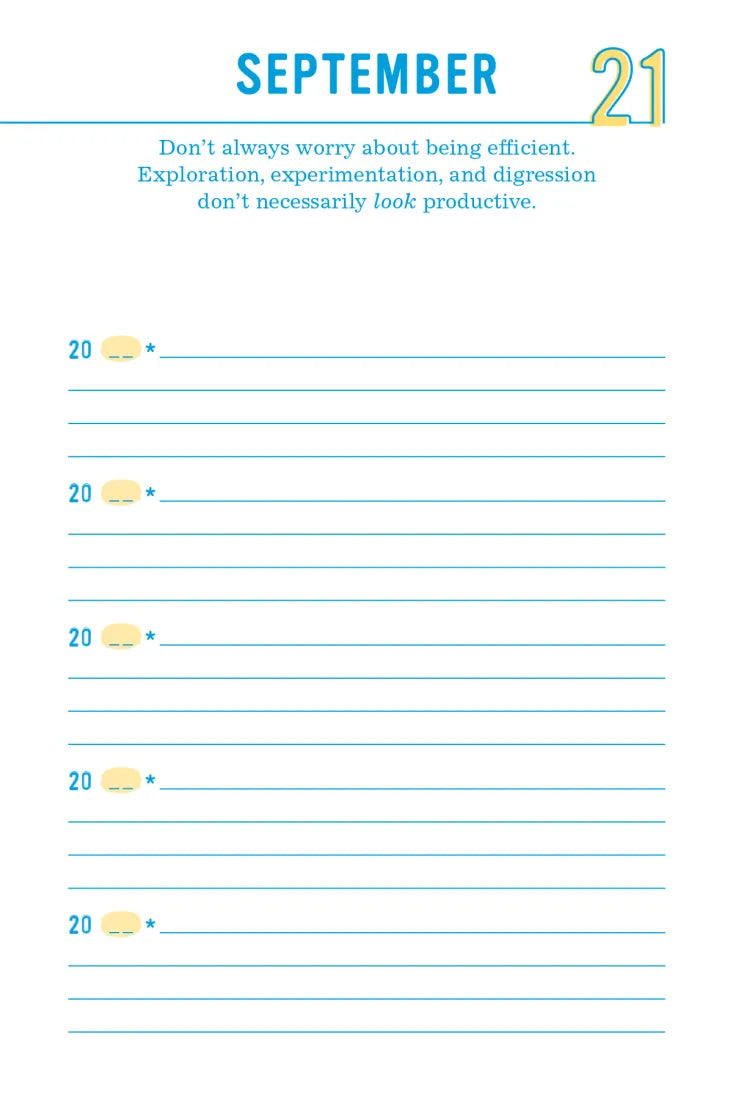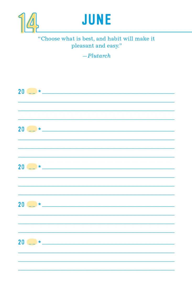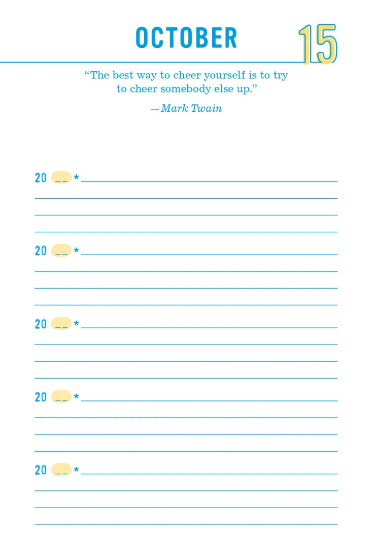 This daily ritual is highly do-able and provides a striking sense of accomplishment, and as the years go by you can see how your entries evolve.