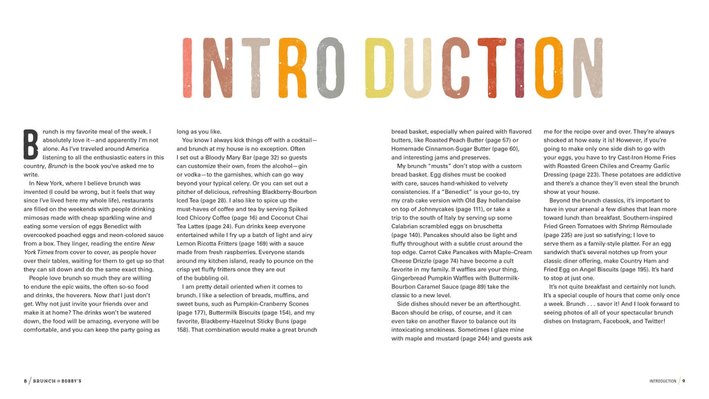 Bobby Flay may be best known for his skills at the grill, but brunch is his favorite meal of the week. In Brunch at Bobby’s, he includes 140 recipes starting with the lip-smacking cocktails, both spiked and virgin, that we have come to expect from him, along with hot and iced coffees and teas. He then works his way through eggs; pancakes, waffles, and French toast (including flavored syrups and spreads); pastries (a first) and breads; salads, sandwiches, and side dishes. Pull up a seat and enjoy a Sangria Sunrise, Carrot Cake Pancakes with Maple-Cream Cheese Drizzle, Sautéed Bitter Green Omelets, and Wild Mushroom-Yukon Gold Hash. You'll want to keep coming back for a taste of how Bobby does brunch.