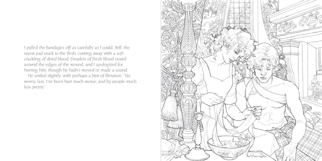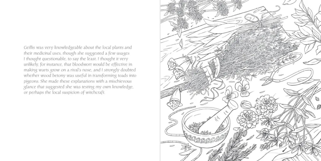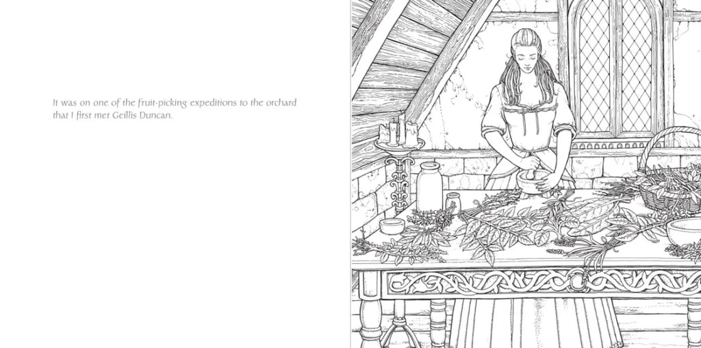 From the lush green of the Scottish Highlands to the military red of a British soldier’s coat or the vibrant hues of a tartan kilt, the colorful world of Claire Beauchamp Randall and Jamie Fraser is now yours to explore. Featuring gorgeous natural landscapes, detailed drawings of Claire’s medicinal herbs, depictions of the books’ most beloved scenes and characters, and intricately rendered clothing, weapons, and armor straight out of eighteenth-century Scotland, these exquisite black-and-white images—from renowned illustrators Juan Alarcón, Yvonne Gilbert, Craig Phillips, Jon Proctor, Tomislav Tomić, and Rebecca Zomchek—are designed to dazzle and inspire. Fans of the series, as well as lovers of history and art, can party like it’s 1743.
