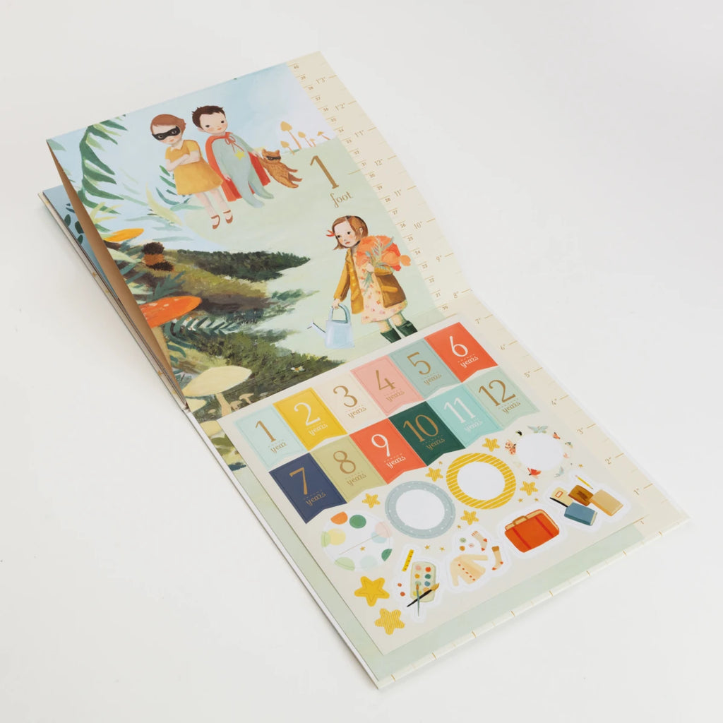 • Includes years 1–12 stickers for annual measuring and twelve stickers for marking special events.