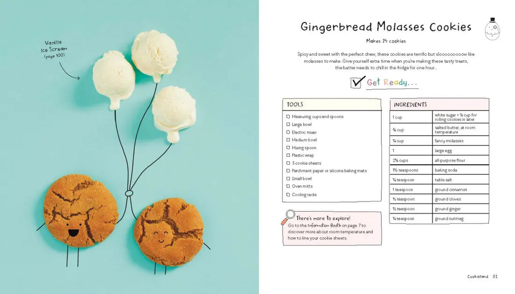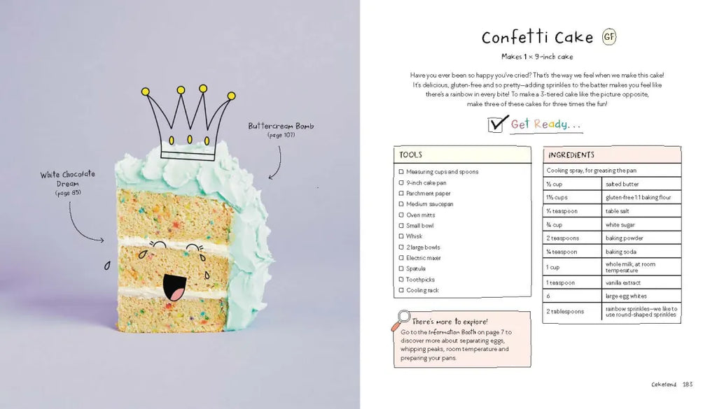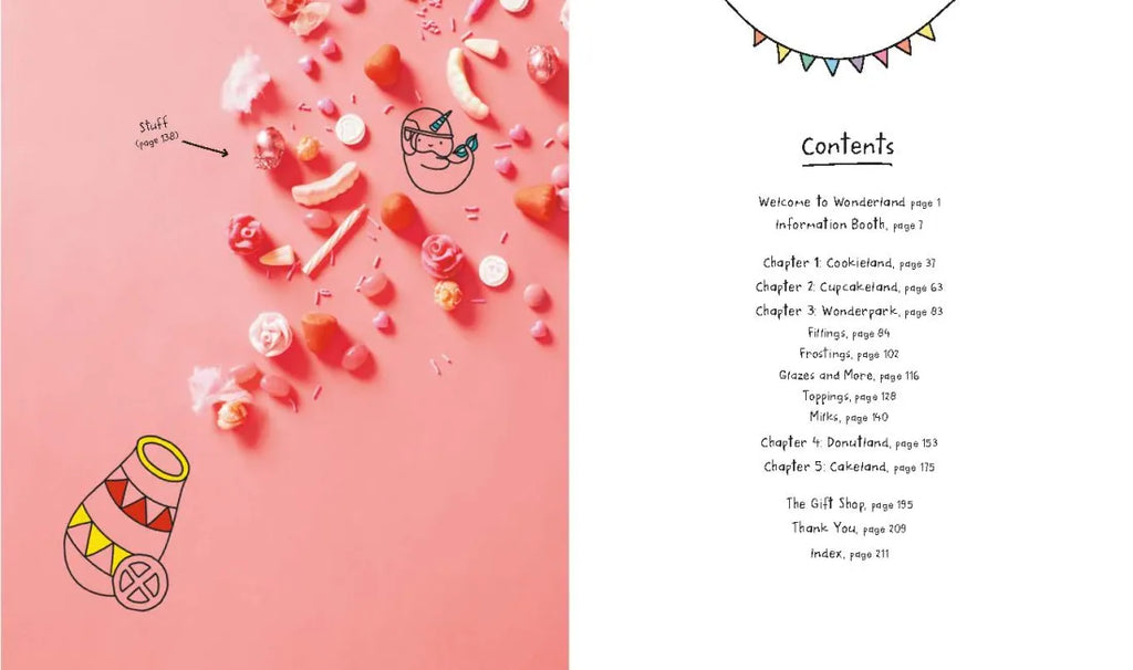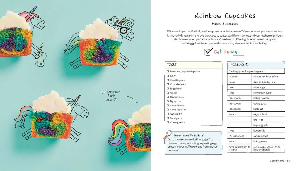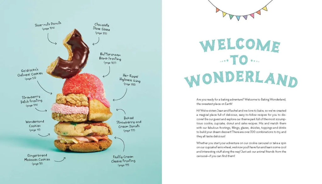 This mix-and-match cookbook is for curious kids who love to laugh. It’s the perfect first baking book for children to use their imaginations, learn new skills and take their baking adventures to out-of-this-world heights! Be our guest and explore this magical theme park full of the most scrumptious cookie, cupcake, donut and cake recipes. Mix and match them with our fabulous frostings, glazes, toppings and milks to build countless combinations for your dream desserts. Wherever you start your adventure, we know you’ll have fun and learn some cool and interesting stuff along the way . . . Just ask the animal friends you’ll meet throughout the book!
