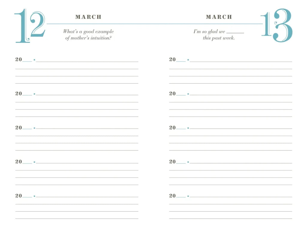 A mother and child share so much together--countless milestones, simple joys, unexpected challenges, and all the little surprising moments in between. This five-year journal will help you capture it all--simply turn to today's date and take a few moments to answer the question at the top of the page. As the journal fills, it will become a loving record and cherished family keepsake.