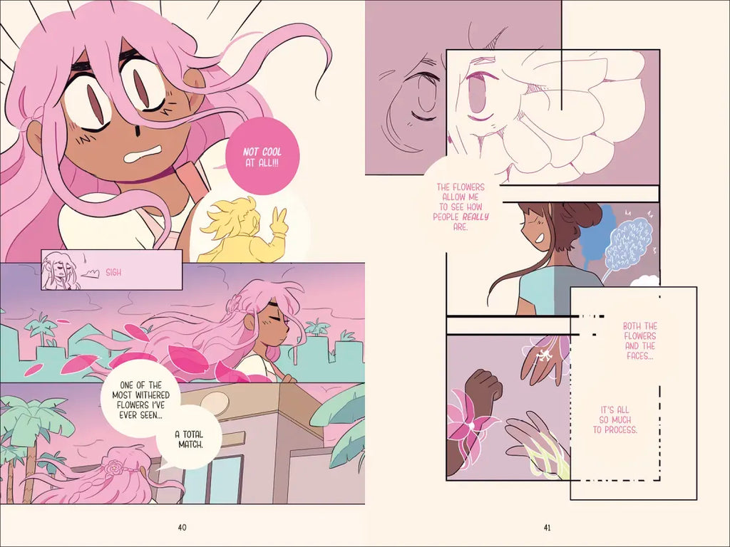 Until she meets Ashe, a charming transfer student who can somehow see these mysterious flowers, too. Unfortunately for Marlena, Ashe wants nothing to do with her. But as their thorny connection blooms, so do hidden secrets buried years ago. In this stunning graphic novel where dreams are woven into reality and not everything is as it seems, Marlena and Ashe must unfold the truth together, no matter where it may lead.